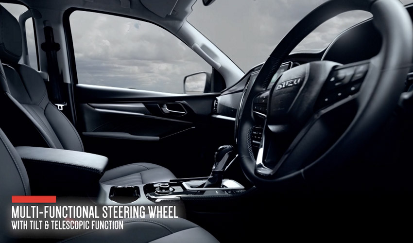 Selama menaklukan tantangan, kami juga ingin Anda selalu merasa nyaman. Karenanya All New Isuzu mu-X 4x4 memberikan kenyamanan lebih dengan kabin yang memberi ruang gerak fleksibel untuk 7 orang sekali jalan. Ruang kaki dan head roomnya pun juga cukup lega dengan roda kemudi yang lebih sporty dan diameter yang lebih kecil dan pengaturan tilt & telescopic membuat pengemudi jadi lebih nyaman saat berkendara. Dan ketika menempuh jarak tempuh yang jauh, Anda pun akan tetap merasa rileks karena fitur 5 link coil spring membuat laju All New Isuzu mu-X 4x4 terasa lebih empuk.